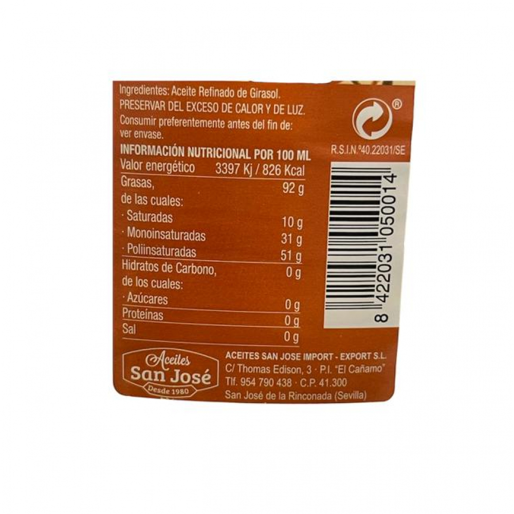 Ingredientes: Aceite refinado de girasol. PaÃs de origen: España.
