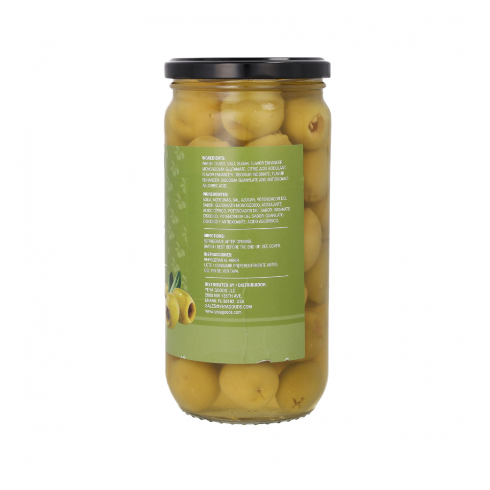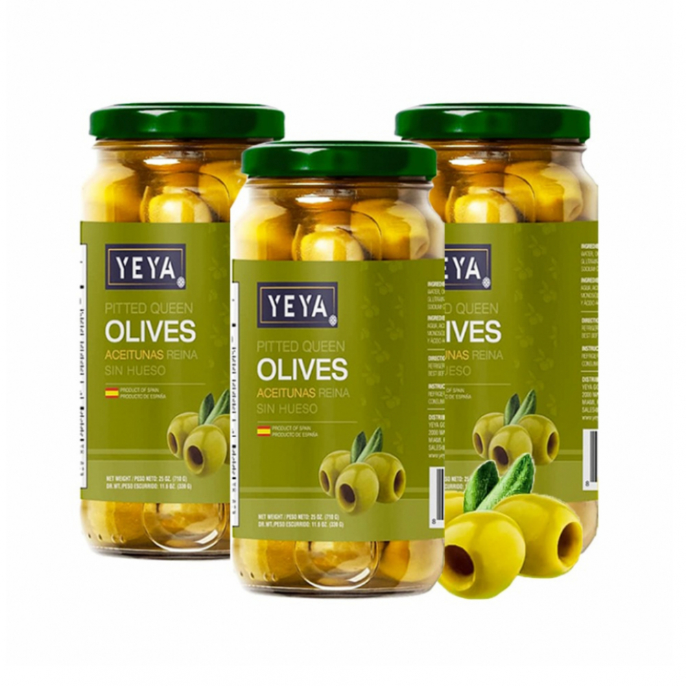 Las aceitunas reina son recogidos a mano de los bosques en España y son conocidos por su tamaño regordete, textura carnosa y un delicioso sabor suave a mantequilla. Las aceitunas Yeya tienen un bajo amargor y son aliñadas con una receta tradicional a base de especias. Su exquisito sabor y su tamaño jumbo hacen de esta aceituna un complemento perfecto para tus comidas.