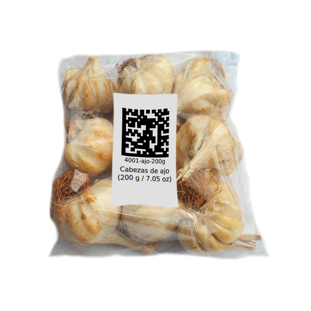 Cabezas de ajo empaquetadas para su comercialización. Los ajos poseen una riqueza en proteÃnas e hid