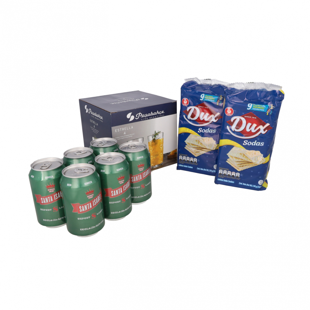 Contiene: (6) Cerveza Santa Isabel (330 ml) (1) Juego de 4 vasos largos para bebida Estrella 490