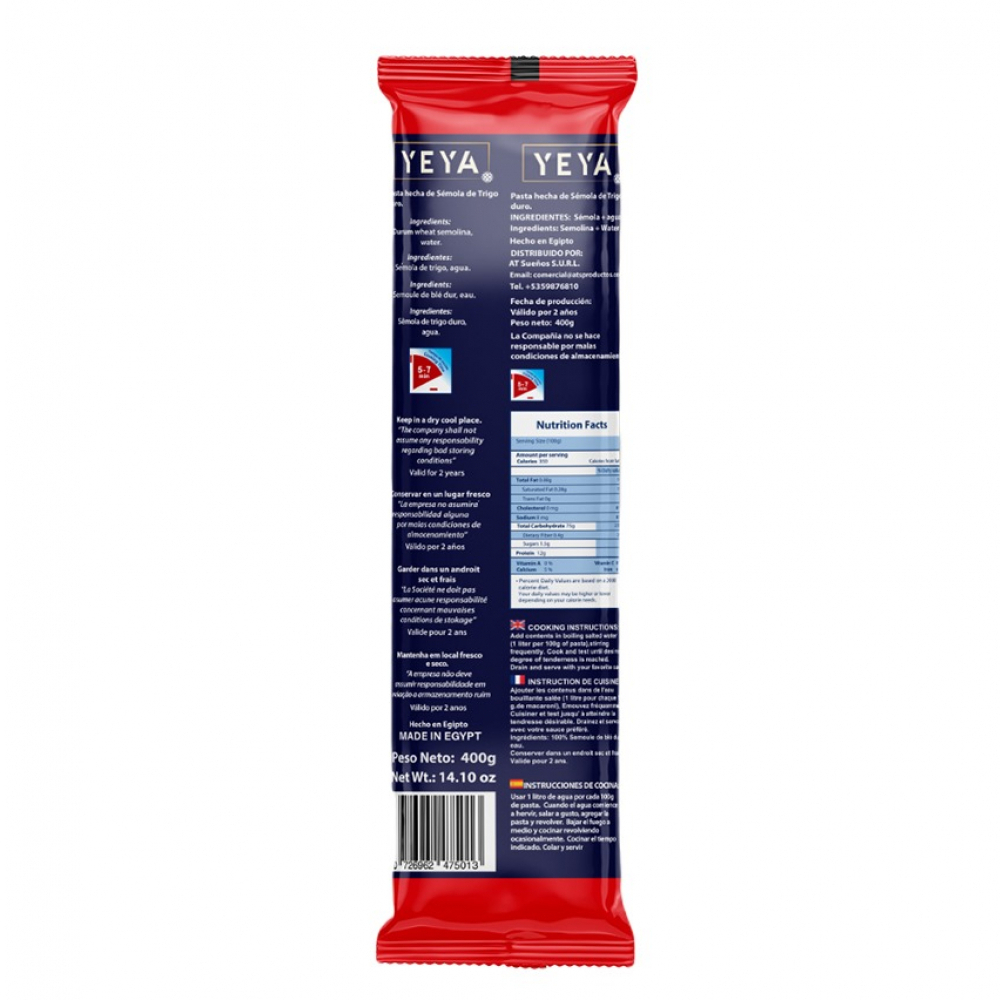 Ingredientes: Sémola de trigo duro, agua. Tiempo de cocción: 5 a 7 minutos PaÃs de origen: Egipto.