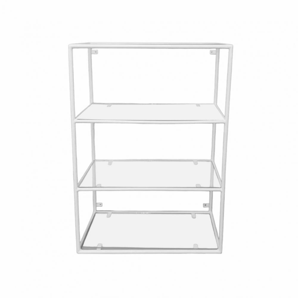 Acero redondo con acabado de esmalte blanco y cristales claros de 5 milÃmetros. Dimensiones: An