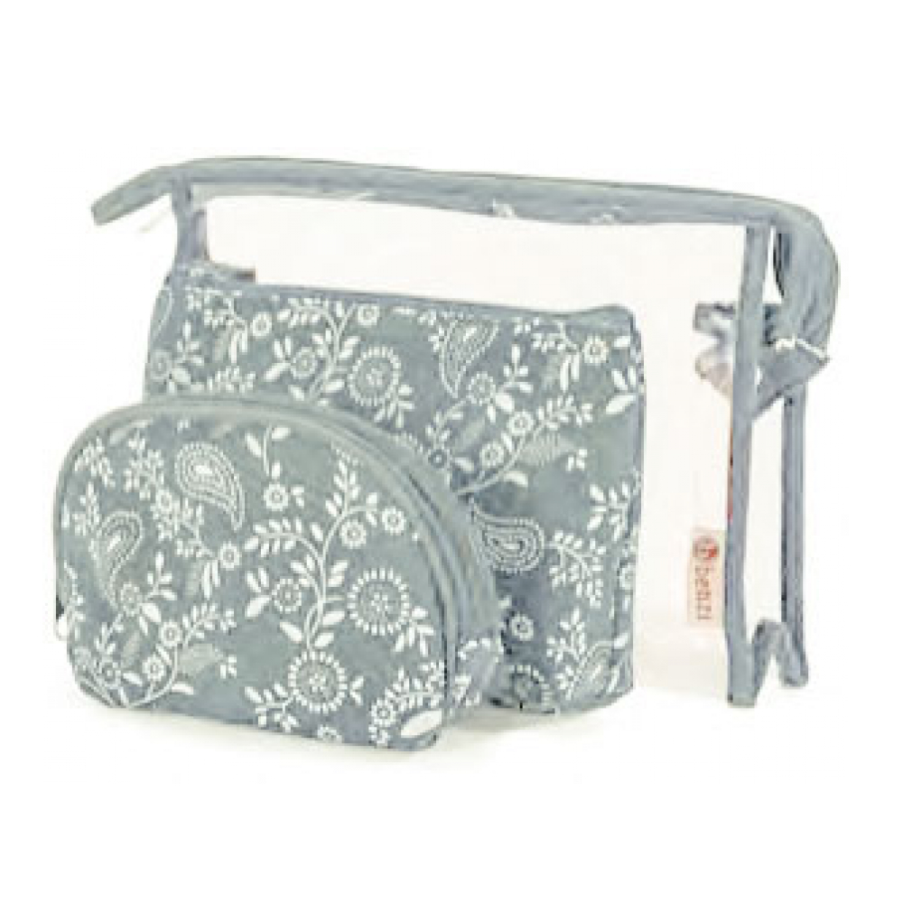 Conjunto de 3 piezas de estuches para cosméticos. Material: Poliéster – PVC. Color gris Consta: