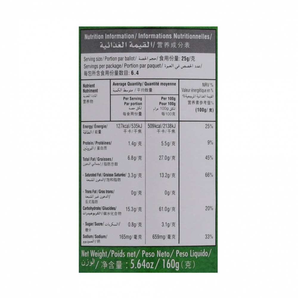 Ingredientes: Papas Secas, Aceite Vegetal (Aceite de Palma), Condimentos de Sabor a Crema Agria (Mal