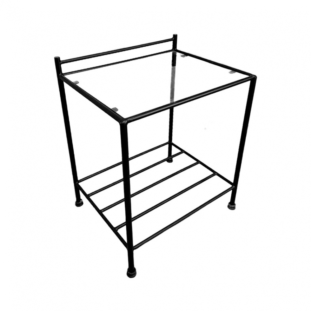 Mesas de acero redondo con acabado de esmalte negro y cristales claros de 5 milÃmetros. Dimension