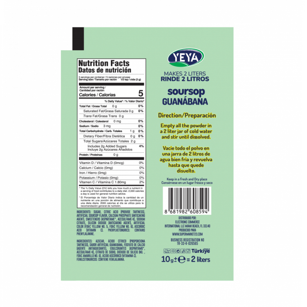 Refresco instantáneo -con azúcar- sabor a guanábana Yeya (10 g)