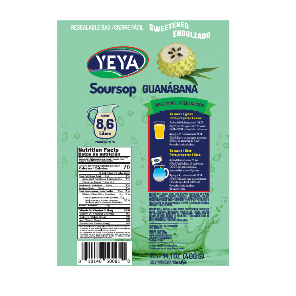 Refresco instantáneo -con azúcar- sabor a guanábana Yeya (400 g / 14.1 oz)