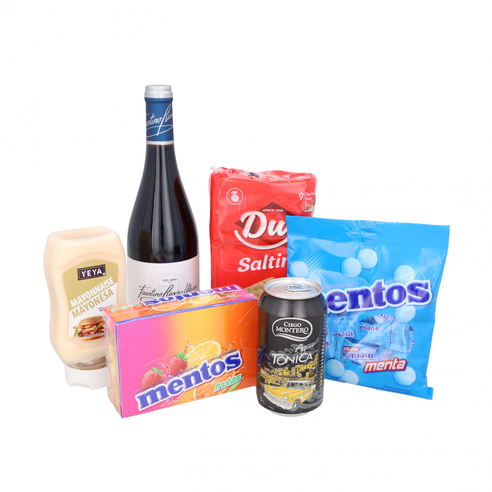Contiene: (1) Vino tinto Faustino Rivero Ulecia (750 ml) (1) Galletas saltinas Dux (217.8 g / 7.68