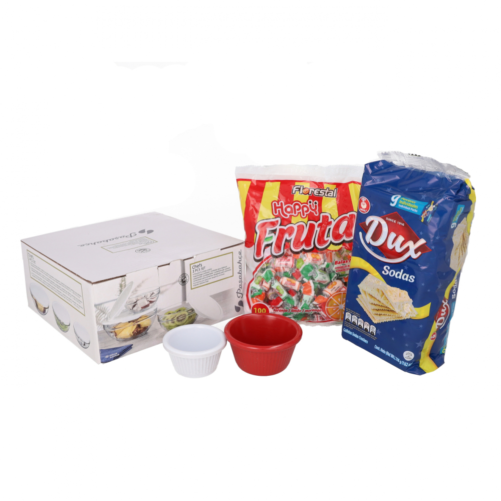 Contiene: (3) Recipiente para alimento con tapa blanca Chefs. (1) Molde acanalado color blanco Kul